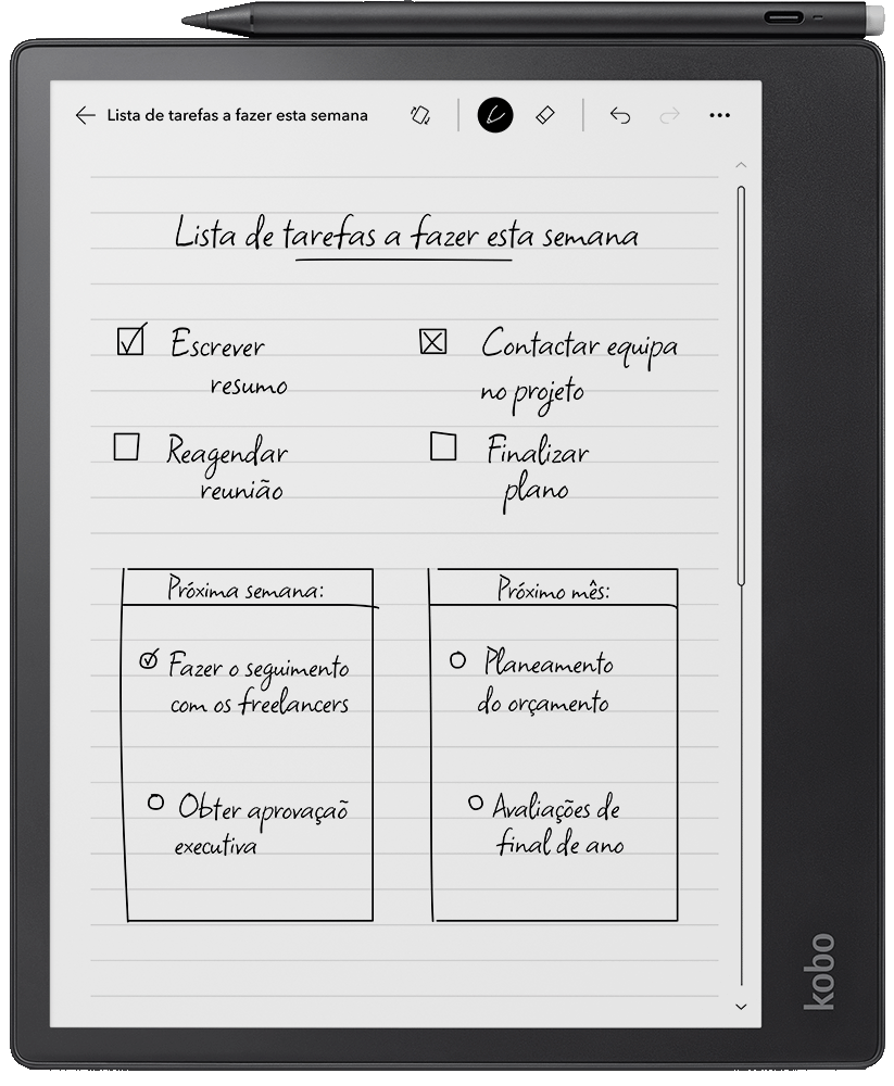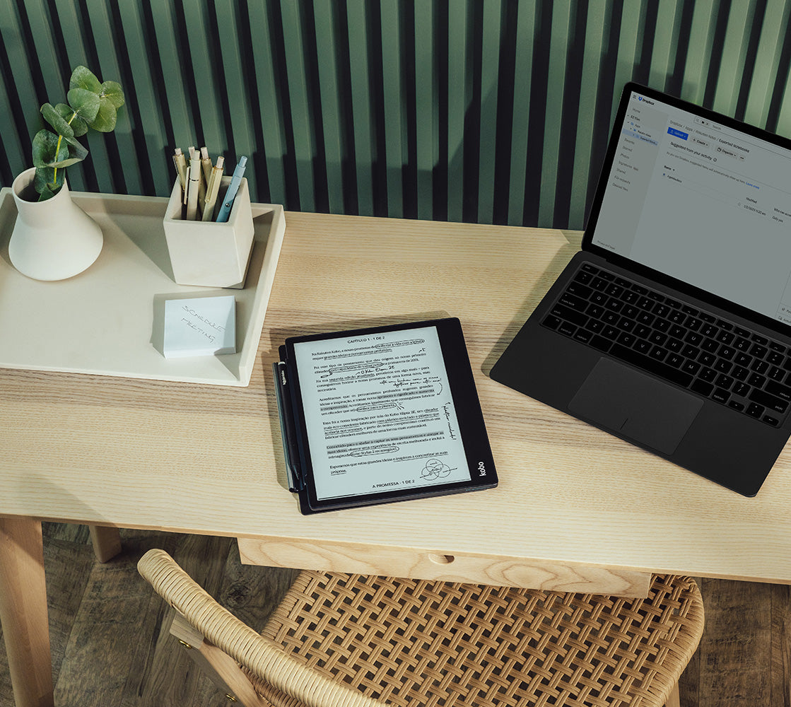 Feito para grandes pensadores e num pacote com a Kobo Stylus 2, o recém‑atualizado Kobo Elipsa 2E foi concebido para o ajudar a concentrar‑se e a organizar os seus pensamentos.