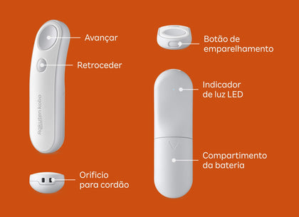 Desfruta do único telecomando feito para o teu Kobo, desenhado para complementar perfeitamente o teu eReader e manter-te imerso na tua história.